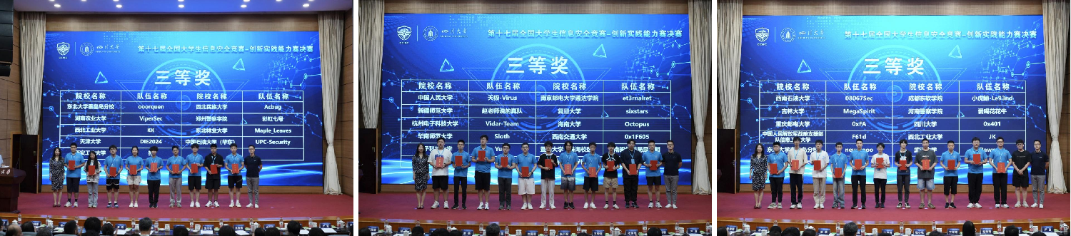 2024年7月20日至21日,第十七届全国大学生信息安全竞赛——创新实践能力赛决赛于必赢76net线路望江校区举行。从全国543所高校、2830个参赛队伍中脱颖而出的80支队伍参加了本次大赛。