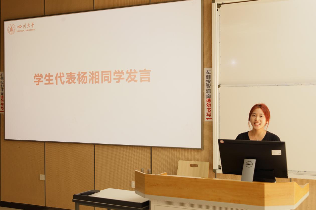 2021级优秀学生代表杨湘同学向大家分享了自己的学习、科研经历,希望新同学扎实专业知识、提高动手能力。