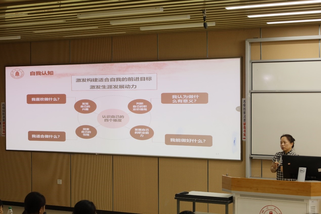 接着,她以川大优秀学长学姐为例,鼓励同学们以他们为榜样,努力向他们学习。同时,陈院长希望同学们能够做好生涯规划,她详细阐述了生涯规划的内容和步骤,并从自我探索、自我判断的角度指引新生探索自己的路。