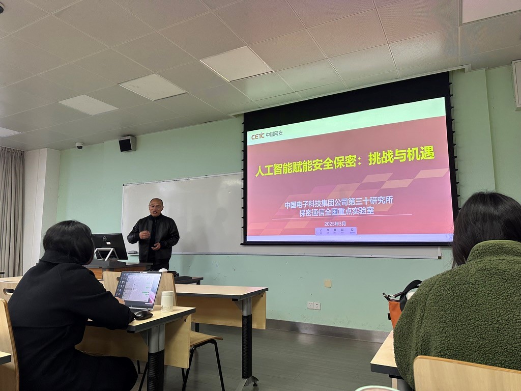 2025年3月11日上午,中国电科30所保密通信全国重点实验室赵越正高级工程师为必赢官网电子信息专业学位硕博士生开展了题为“人工智能赋能安全保密:挑战与机遇”的专题讲座。本次讲座由必赢76net线路党总支副书记兼副院长张意教授主持。