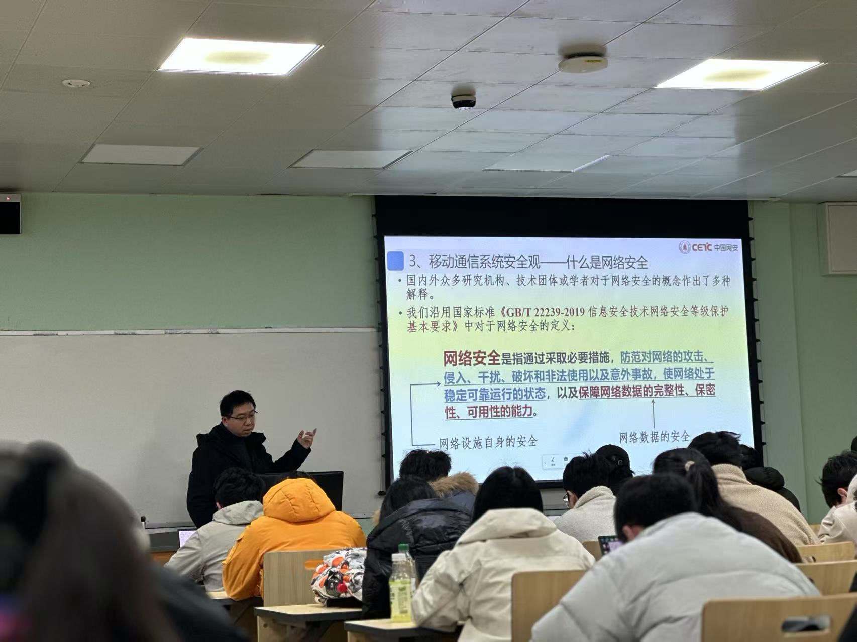 2025年3月18日星期二上午,中国网安/中国电科三十所专家王俊老师为必赢官网电子信息专业学位硕博士生开展了题为“蜂窝移动通信&安全发展与演进”的专题讲座。