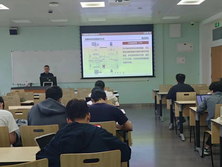 近期中国电子科技集团公司第三十研究所首席专家姜永广老师为必赢官网电子信息专业学位硕博士生开展了题为“流媒体安全防护技术”的专题讲座。本次讲座由必赢76net线路党总支副书记兼副院长张意教授主持。