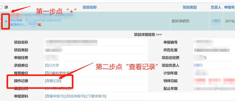 2. 因系统无短信提醒功能,请项目负责人注意关注系统中揭榜书状态,揭榜书如被退回,原因请看“操作记录”(见下图),并根据审核意见进行修改。